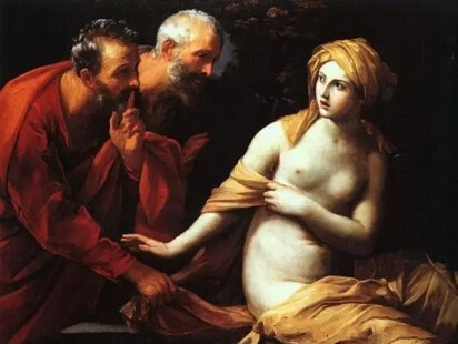 女性主义艺术史学家波洛克将这个故事看作是性欲和视觉诱惑、女性贞洁与男性法则的复杂叙事。戏剧焦点集中在女性洗澡时将裸体展现给好色偷窥者这一瞬间,尤为强调了这一主题的色情、窥阴和视觉侵犯等几个方面。