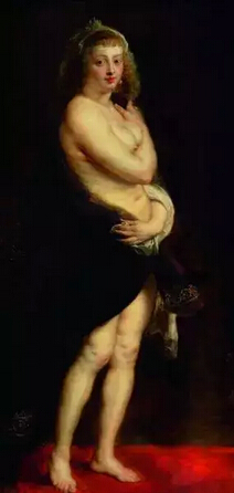 就鲁本斯个人而言,人文主义的追求,更多地体现在对情感的放纵与生命力的旺盛的赞颂,而并不在于人物内心的刻画或悲天悯人的倾诉。鲁本斯先后迎娶了两位绝色娇妻,以她们为模特创作了大量充满生命力的佳作。尤其是第二任妻子海伦娜,嫁给53岁的鲁本斯时年方二八,青春与美貌是海伦娜作为画家模特最好的资本,她那忽闪忽闪的大眼睛充斥着鲁本斯后期的创作,鲁本斯甚至将她化身为缪斯之神,留下了《披上毛皮的海伦娜·芙尔曼》这样的经典之作。海伦娜直视画外的观者,充满了自信,幽暗的背景衬托着明亮的人物造型,海伦娜侧身站在浴池旁边,红润饱满的肉体和吹弹可破的肌肤被鲁本斯恣意潇洒的笔触所强化,脚下的红色增添了画面的温暖感,在大面积深色的画面中显得华丽高贵,边缘线的暖色运用与之相呼应,让人物充满生气。