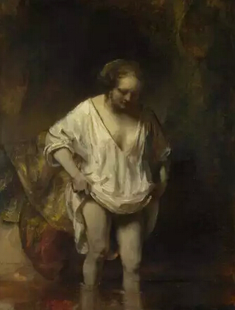 当对裸体女性题材的表现不必再假借神话或圣经故事,浴女们便走出神龛来到了人间。不过,即便如此,画家们想要在画面中表现一个陌生的裸体洗浴的女性也是师出无名,于是,将裸身出浴的情人、妻子搬上画面便成了许多艺术家的拿手戏。