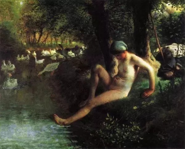 《沐浴的放鹅少女》 [法国]让·弗朗索瓦·米勒(Jean-Francois Millet)巴尔的摩沃尔特斯美术馆藏