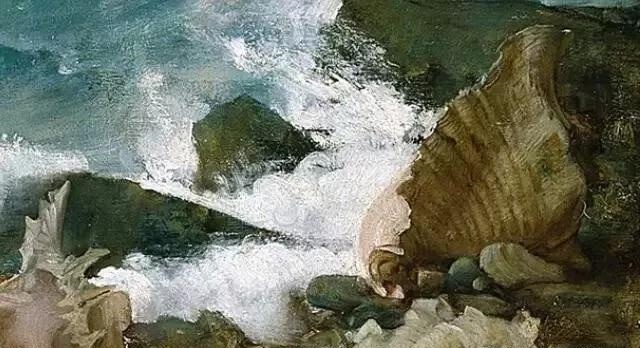 《珍珠和海浪》,目前由马德里普拉多博物馆珍藏!是保罗。1862年创作的一幅油画。它最初是由拿破仑三世的妻子高价收藏的,画面中一位美丽的少女枕着一袭长卷发,侧卧在碧波荡漾的礁石上,她似笑非笑,深情款款,其倾国倾城的回眸一瞬入画,其白皙光洁的背部,清晰的曲线条,以柔和的蓝色为主基调,相互融合在一起。在波浪和礁石,以及礁石上的贝壳衬托下,可谓是美不胜收!