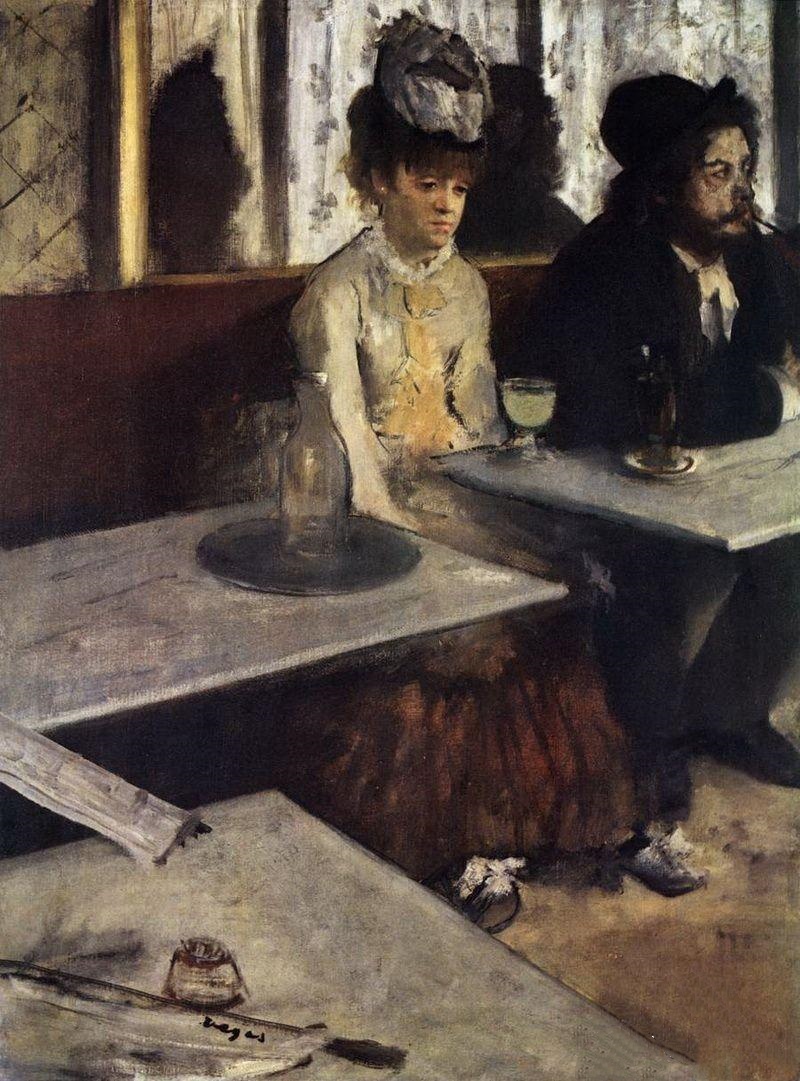 画面中,一男一女两人物被挤到右上角,一杯苦艾酒,反衬出两个失意人的精神状态。德加创造了一个个过度放纵生活的艺人和当代城市人难以忍受的惊人形象,这也是不同人生的状态,也可以说是不同的片段。