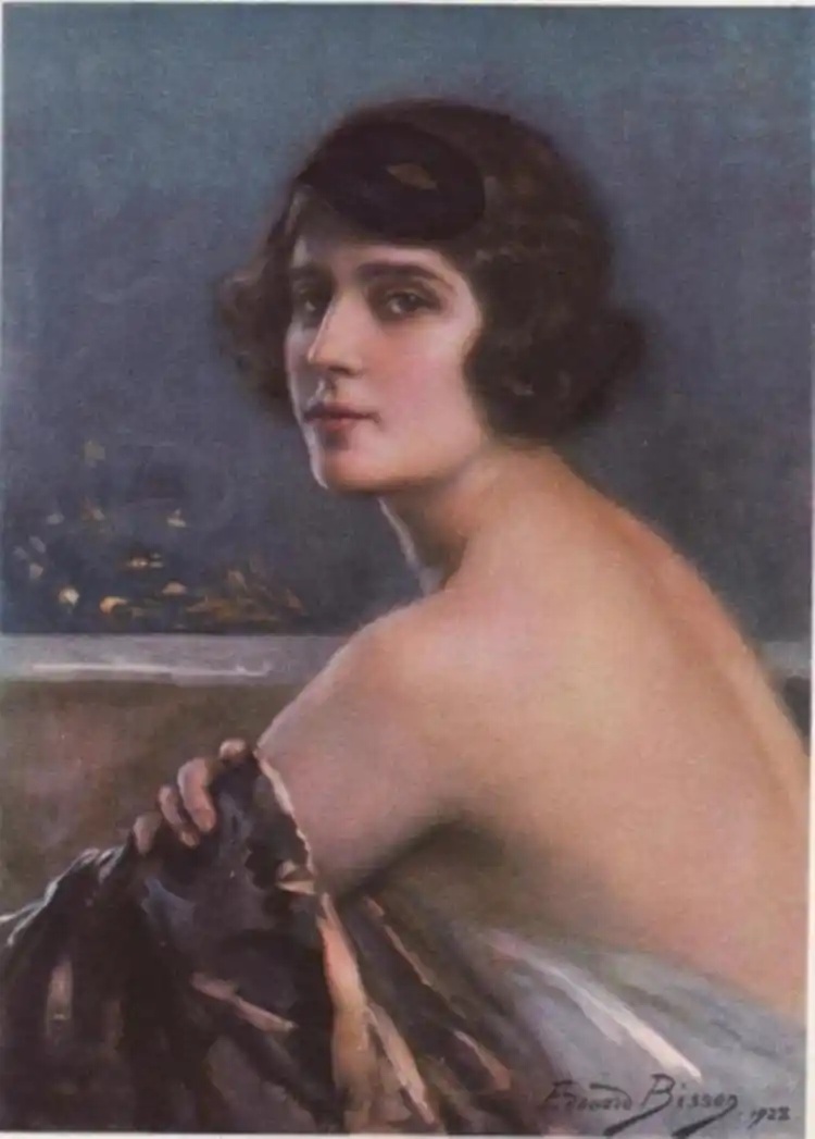 从艺术风格来看,这幅作品无疑体现了新古典主义的特质,同时借用了浪漫主义的情感表达方式。新古典主义以精确的比例和理性化的构图为特点,而浪漫主义则通过笔触、色彩和光影,赋予作品情感与灵魂。这幅画中的背景极其简洁,几乎没有多余的元素,仅用微弱的蓝灰色调渲染出一种空灵感,这使得观众的注意力完全集中在人物本身,尤其是她的眼神与姿态。