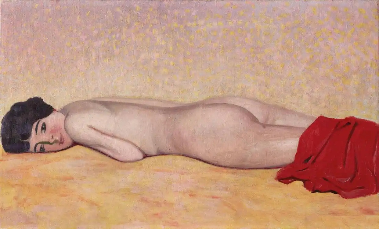 这幅画的创作风格接近于早期现代主义,强调女性身体的自然美与艺术化表达,而非传统艺术中过分理想化的处理。这种画风没有过度追求光影的明暗变化,而是以纯粹的色块和柔和的笔触表达女性身体的温润和沙滩的宁静,展现了一种返璞归真的美感。