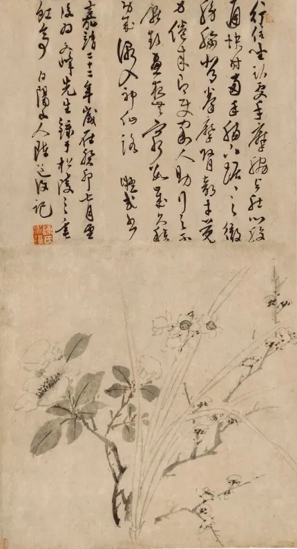 明 仇英《水仙蜡梅》 台北故宫博物院藏