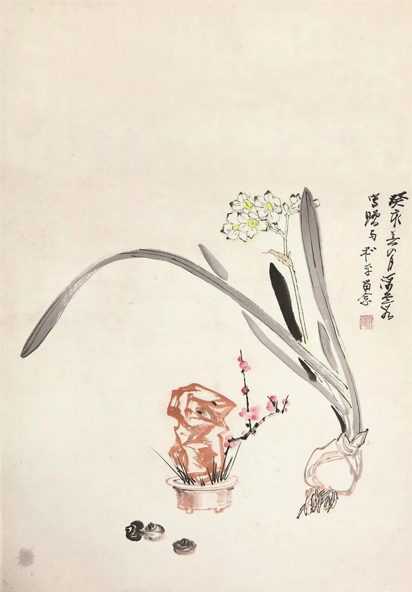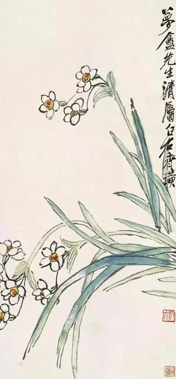 甚喜黄庭坚以得水能仙”四字形容水仙的风骨。无须泥土,只要清水就能供养,简朴素雅至极。