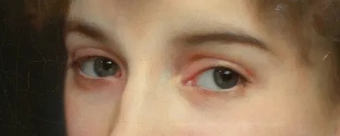 眼睛是心灵之窗,在艺术作品中起到了十分重要的作用。中国古代人物画的传统,是被尊为画圣的顾恺之立下范式的。《世说新语·巧艺》:“顾长康画人,或数年不点目精。人问其故,顾曰:‘四体妍媸,本无关于妙处;传神写照,正在阿堵中。’”此处的“阿堵”就是“眼睛”,画像想要传神离不开眼睛。西方艺术作品中也是同样,即使是同样的动作,画家一旦赋予眼睛不同的表现,便会给人带来截然不同的感受。