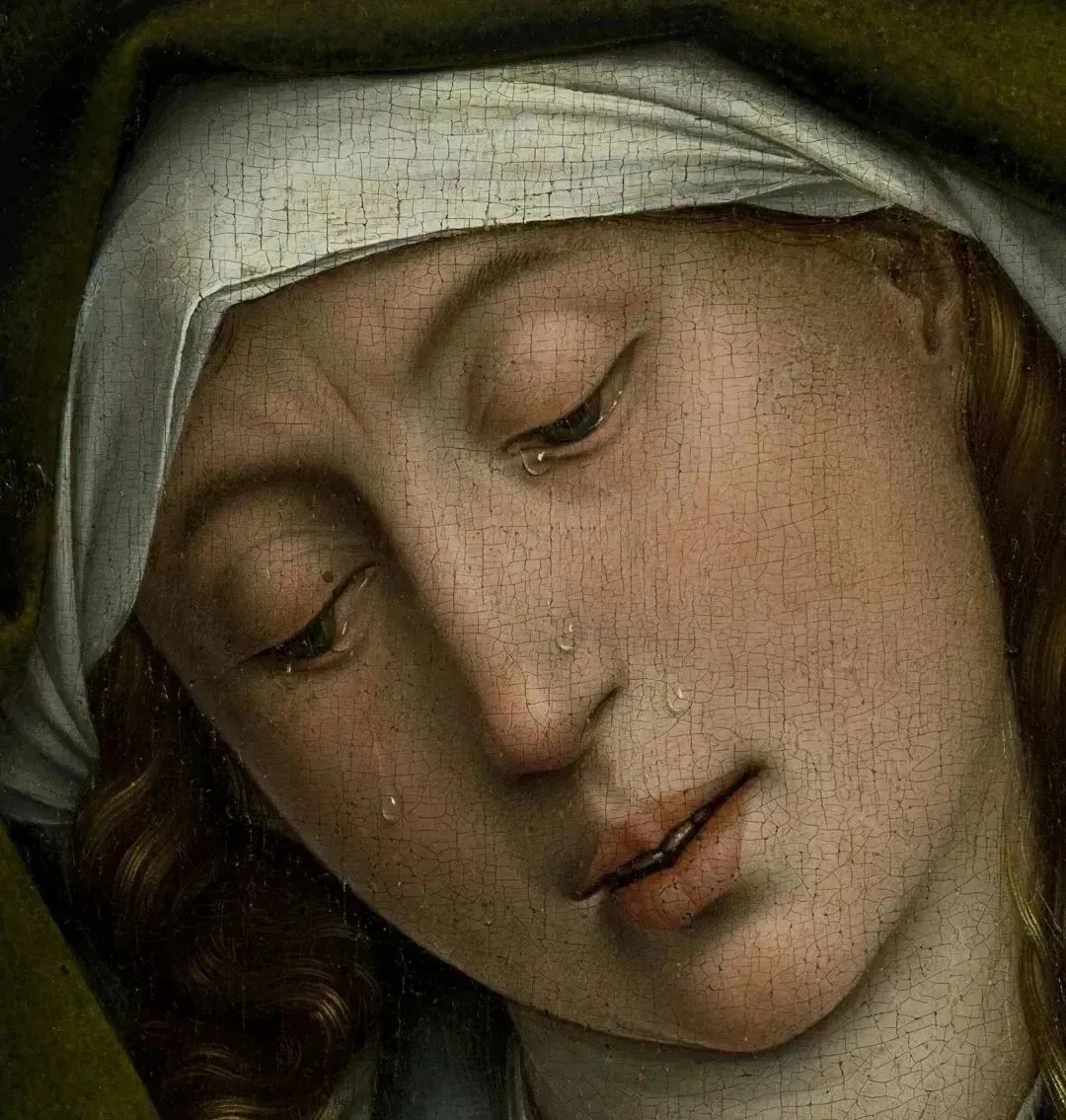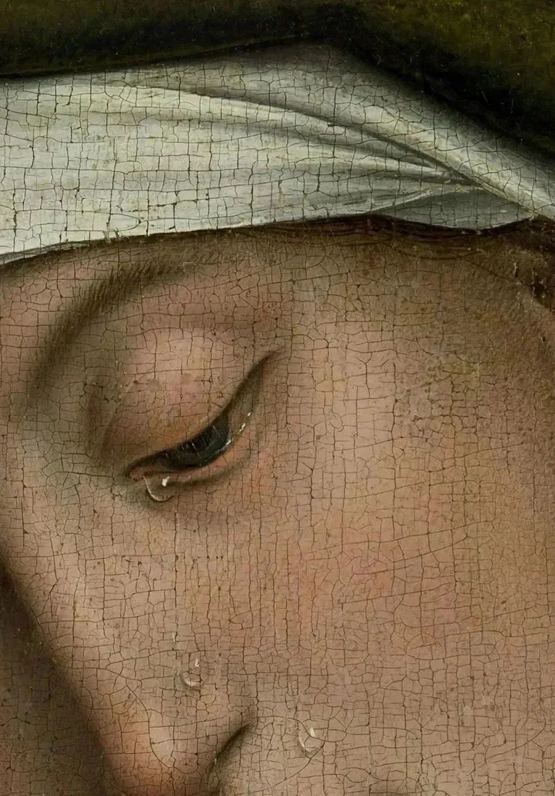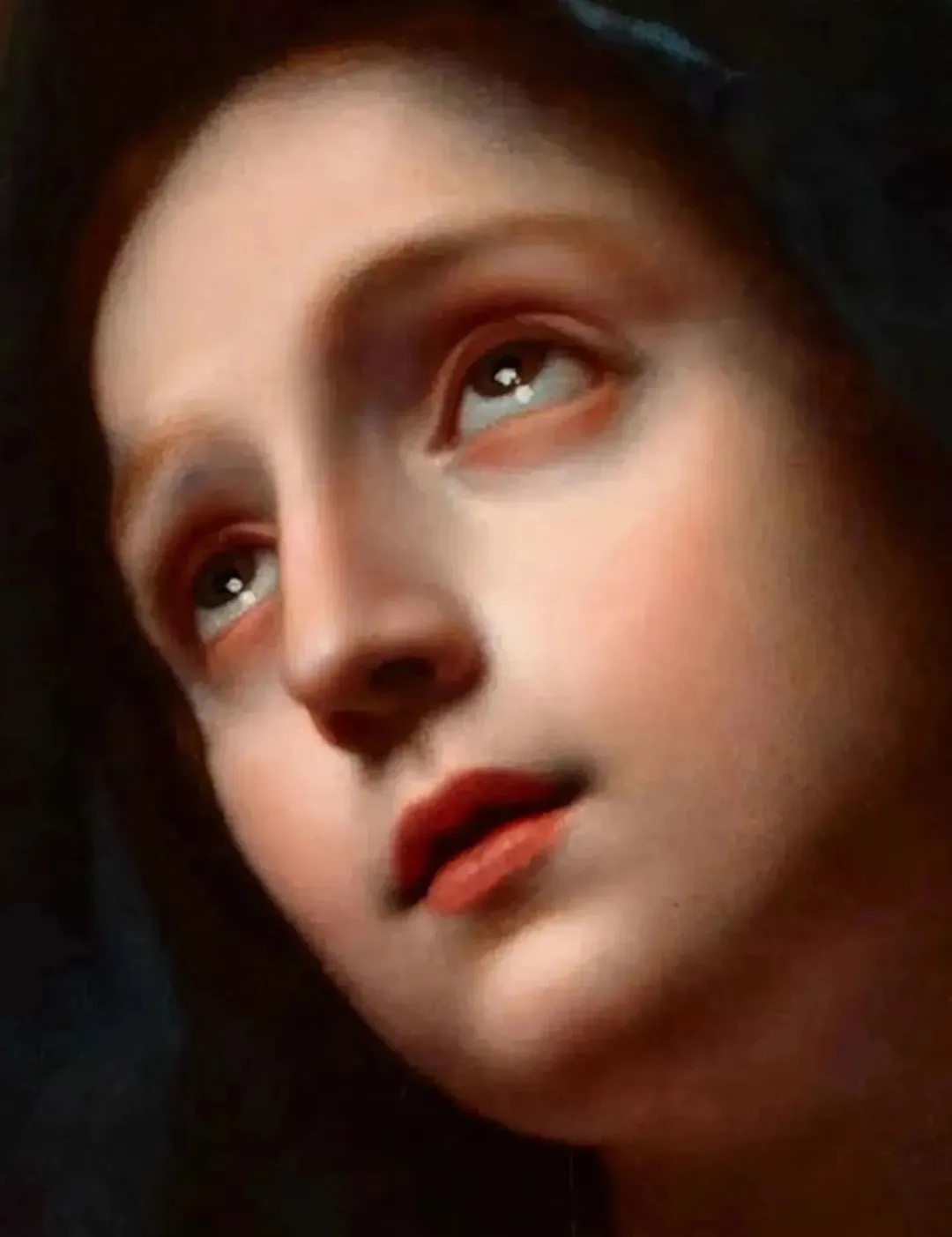画中圣母的目光澄澈而又平静,十分抓人眼球。