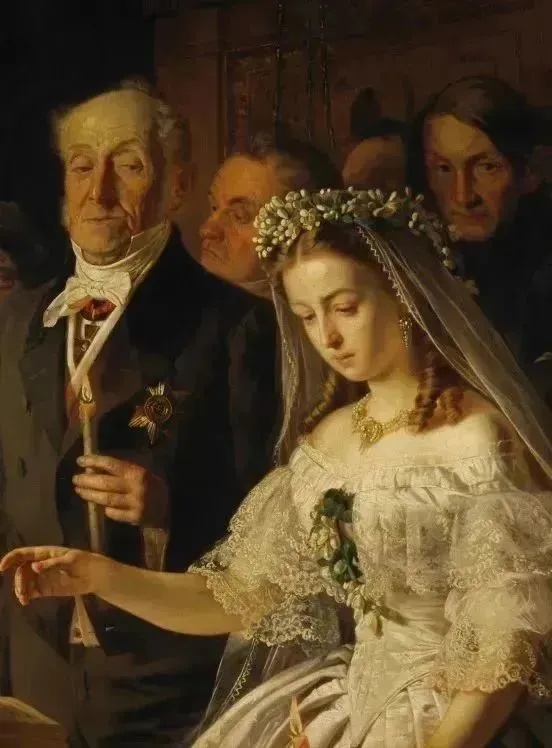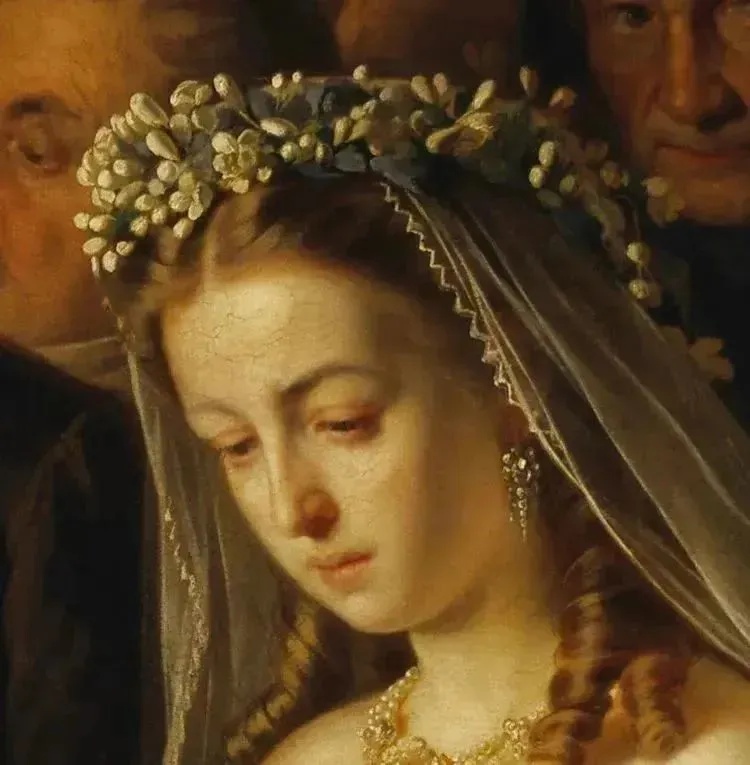 画家对女子的神情刻画得细致入微,光看眼睛也能感受到一丝笑意。