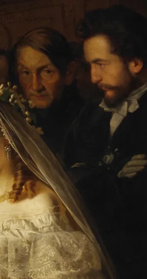 这是早期尼德兰画家彼得鲁斯·克里斯蒂(Petrus Christus)最后的作品——《少女的肖像》。这幅画标志着早期尼德兰肖像画风格的重大进步,画中少女所处环境立体而逼真,有着特别的空气透视效果,单眼皮少女的眼睛稍有错位,眉毛略略倾斜,她用耐人寻味的眼神投向观众,复杂的表情融矜持、聪慧和机敏于一体。