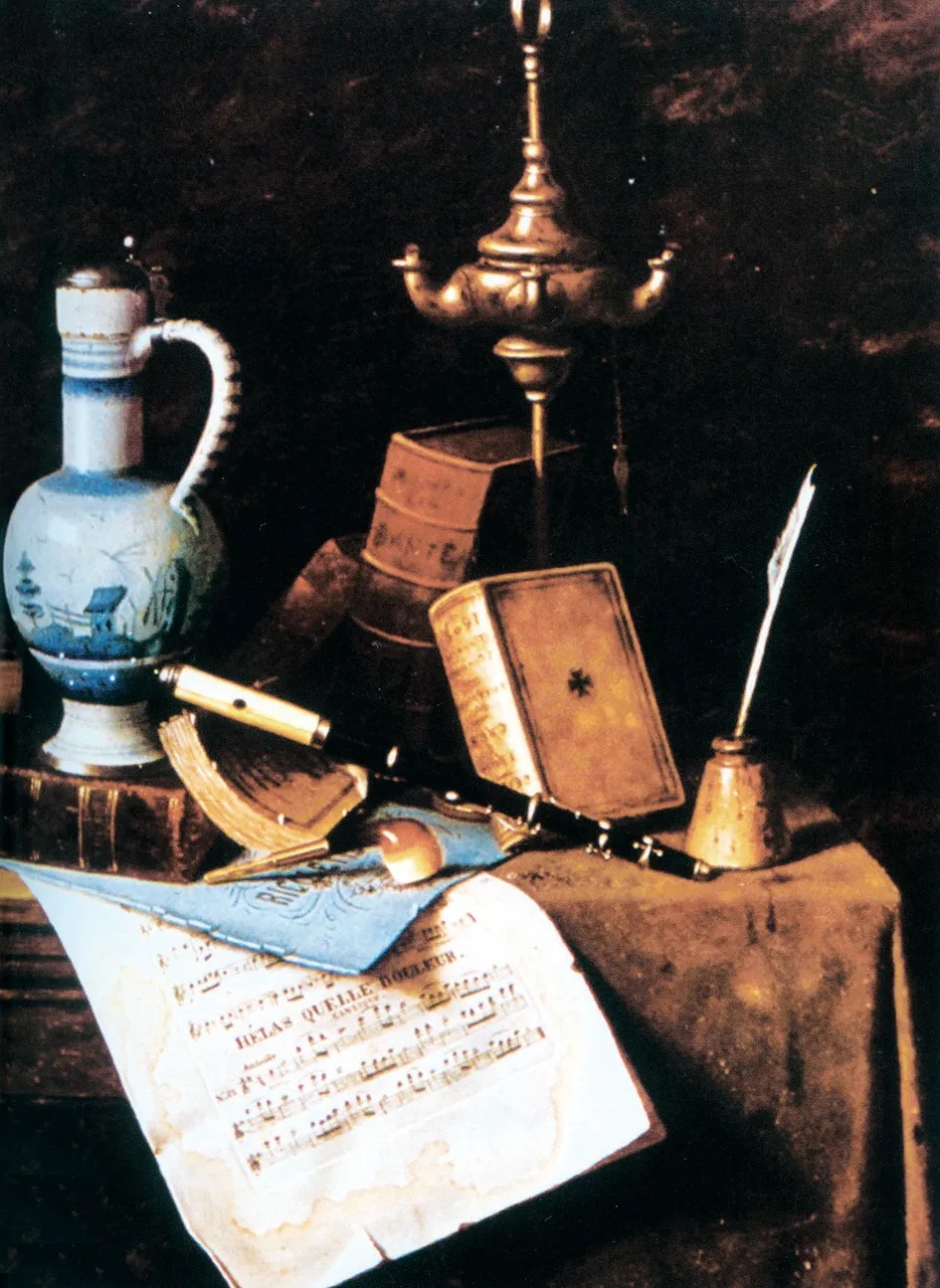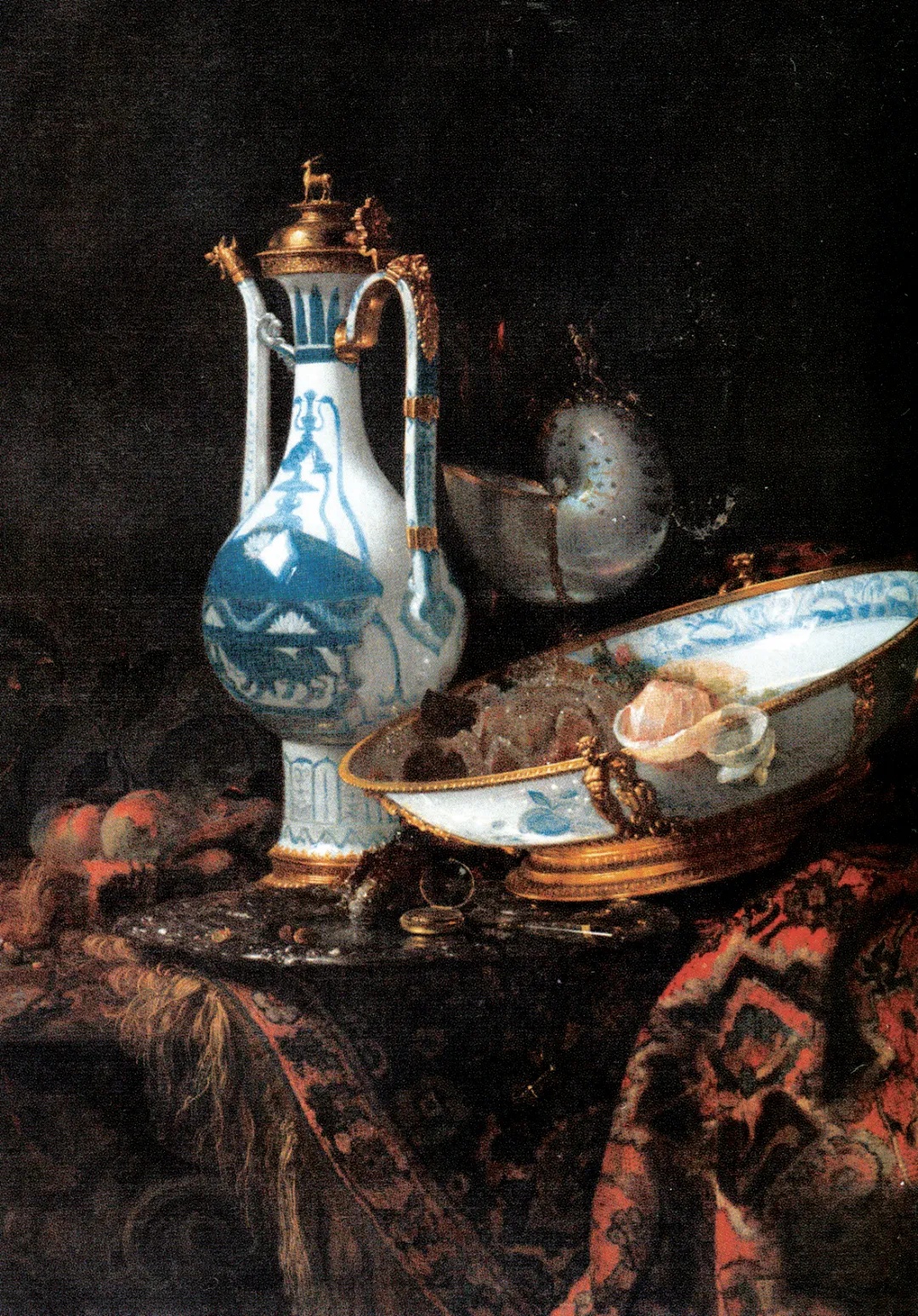 静物:青花喷泉纹执壶、瓷盘ˉ 威廉·卡尔夫ˉ1660 年ˉ 提森·波涅米萨博物馆藏