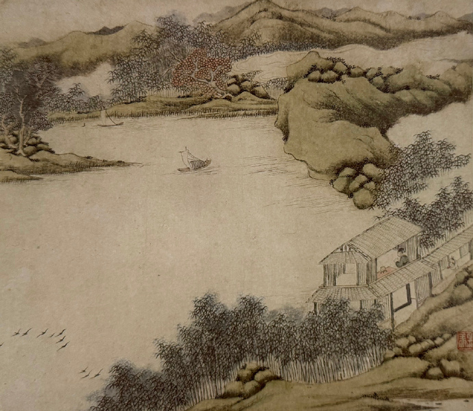 《黄冈竹楼图》由清代钱杜以北宋王禹偁《黄冈竹楼记》为主题创作而成。画中山石环绕、修竹扶疏,竹楼临溪而建,楼中高士绿衣玄冠,手持书卷,正是“戴华阳巾,手执《周易》一卷,焚香默坐,消遣世虑”的王禹偁。画作对幅有钱杜抄录的《黄冈竹楼记》以及题写的跋文。整幅作品图文并茂,既是对宋代士大夫诗意生活的生动揭示,也有助于观者体察那包孕在闲情逸致中的深厚儒者情怀。