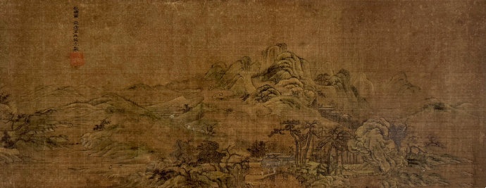 《秋塘图》是明代儒商王镇墓出土的二十五件作品之一。该图以位于中部的木桥、行人为中心,描绘了不同方位下,或古松参天、宫观巍然,或谷壑生云、行旅跋涉,或秋塘泊舟、渔夫归家之景,令人目不暇接。本图笔墨稚拙,与元人王渊的其他作品有较大的差距,因而被专家鉴定为托名王渊的明人手笔。尽管如此,该作构图颇具巧思,生动表现出了不同视角下的山水景致,同时在一定程度上反映了当时以王镇为代表的儒商群体的审美趣味,因而依然有着重要的学术价值。
