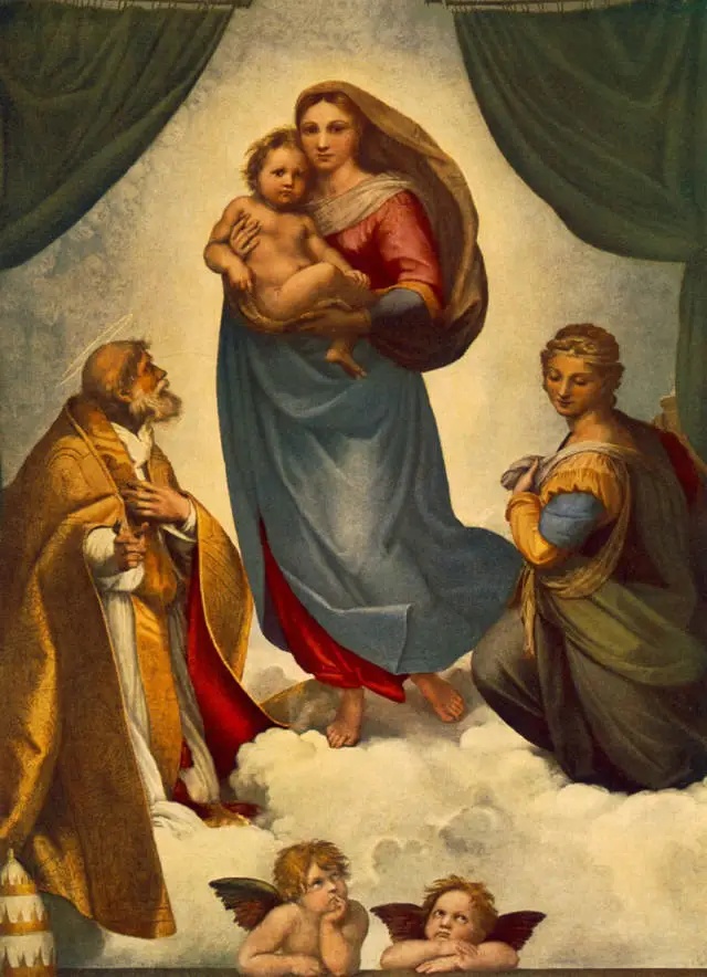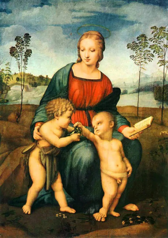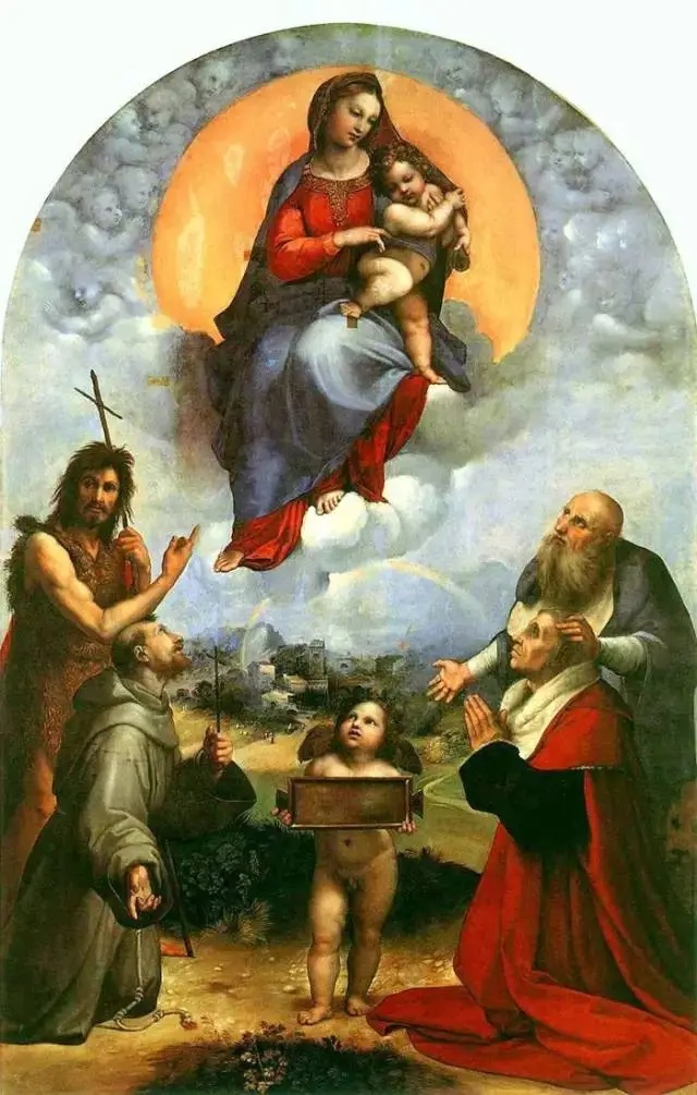拉斐尔·桑西的一系列圣母画像,和中世纪画家所画的同类题材不同,都以母性的温情和青春健美而体现了人文主义思想。他是一位谦虚好学、博采众长的艺术大师,他的艺术特点是秀美、典雅、和谐、明朗;他塑造的众多圣母像最负盛名,美术史上尊称他为“画圣”。