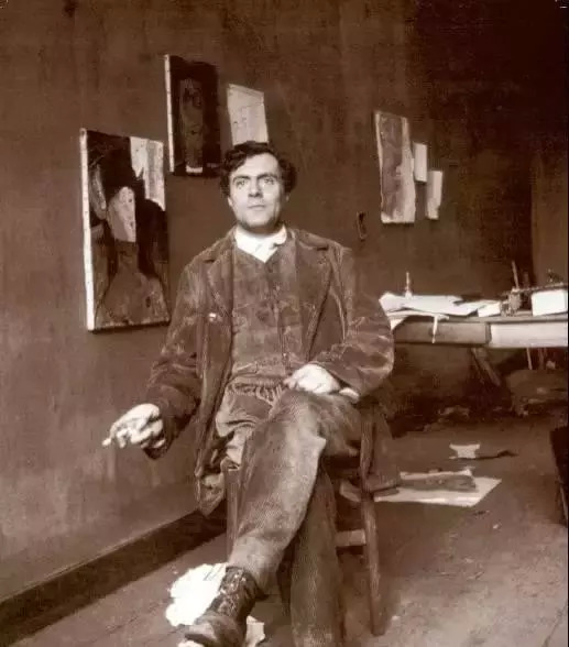 坐在画室中的莫迪利安尼