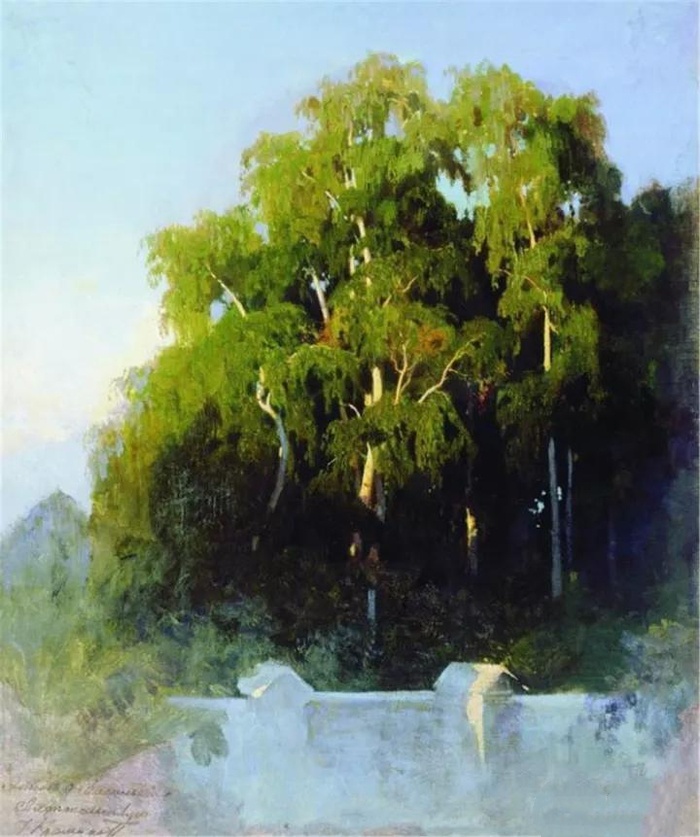 向晚白桦林 (1867-69年)帆布油画, 42.5 x 35 cm