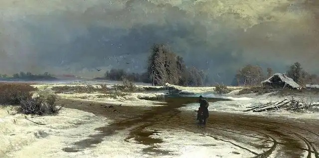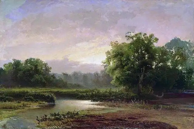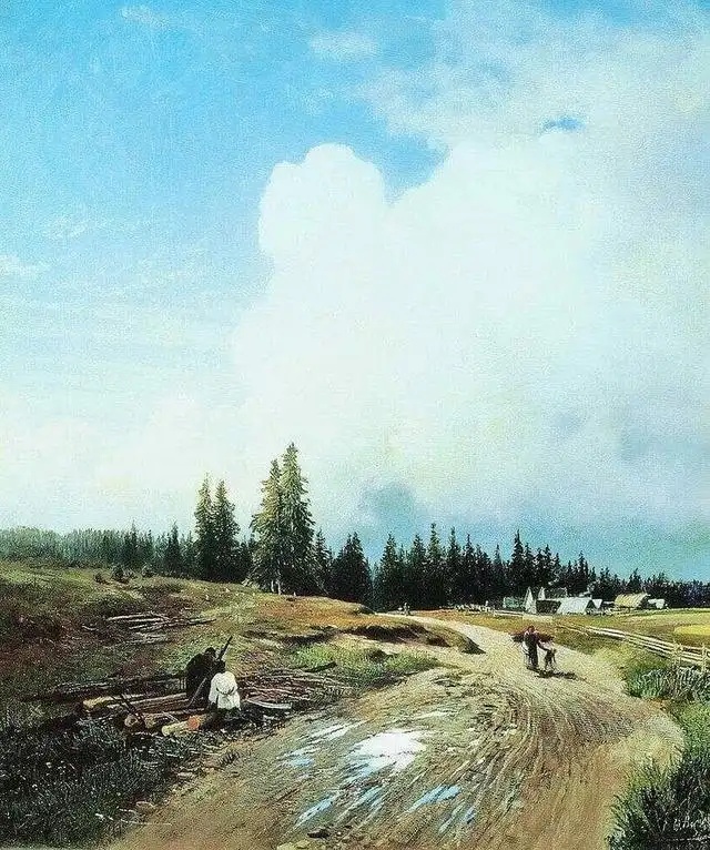 小湖与汹涌澎湃的天空、升腾的云雾之间的对比。盖曾经说过,瓦西里耶夫“发现了湿润的、清澈的、运动的天空”。