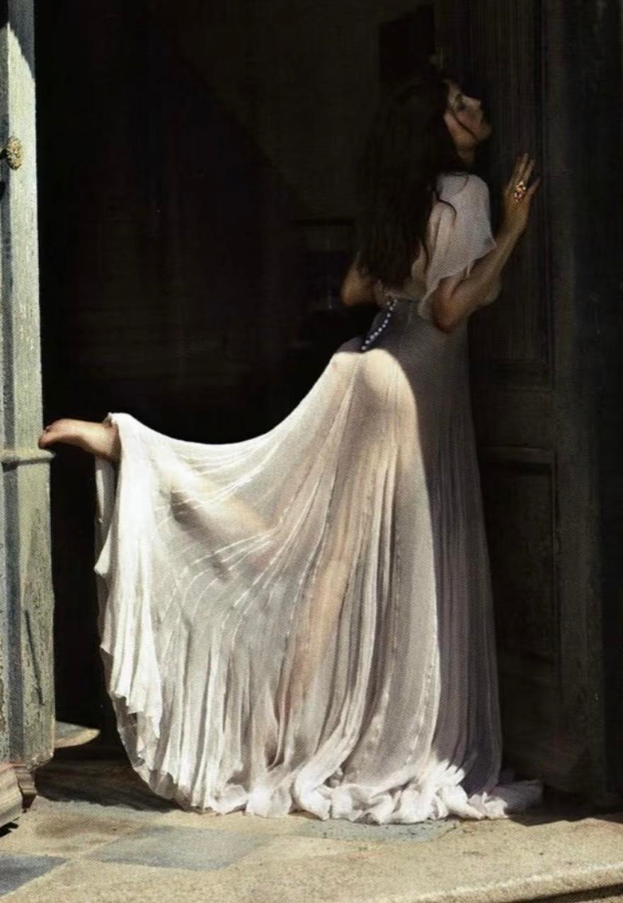布谢以其精准的构图与细腻的情感捕捉而著称,他通过镜头展现人物的内在气质,而不仅仅是外表的美丽。这幅作品不仅彰显了莱蒂西亚·卡斯塔的外在魅力,也反映了布谢对模特人物个性的深刻理解与艺术表达。