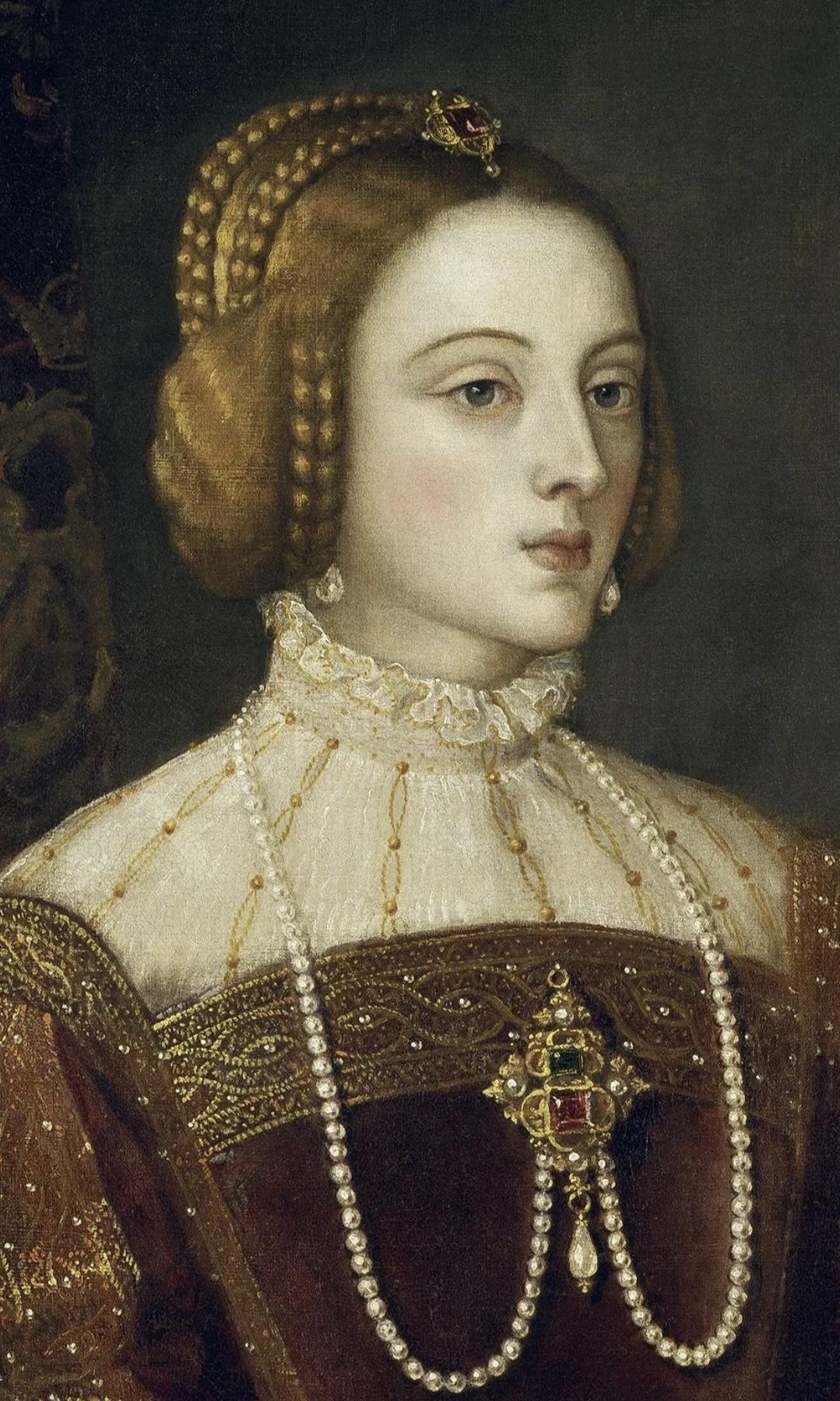 评述:伊莎贝拉(1503-1539年)是葡萄牙国王曼努埃尔一世和第二任王后阿拉贡的玛丽亚所生的长女。她的名字是以她外祖母卡斯蒂利亚女王伊莎贝拉一世的名字命名的。通过她的父亲,她是王子维塞乌公爵费迪南的孙女。伊莎贝拉公主曾经是葡萄牙王位的继承人选,直到她的弟弟路易于1505年出生为止。因为她是葡萄牙国王的长女,所以追求她的男子不少。在以前的欧洲王室里,长女比较次女有不少的优势。查理皇帝也想找个女子替他管理他的西班牙、卡斯蒂利亚、阿拉贡等王国,因为他不常在那里.
