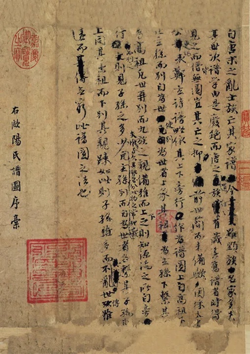 欧阳修《谱图序稿》,实际上包括《欧阳氏谱图序》和《夜宿中书东閤》七律一首。从跋文中可知前者作于至和二年(1055),作者时年四十九岁,后者作于嘉祐八年(1063),时年五十七岁。