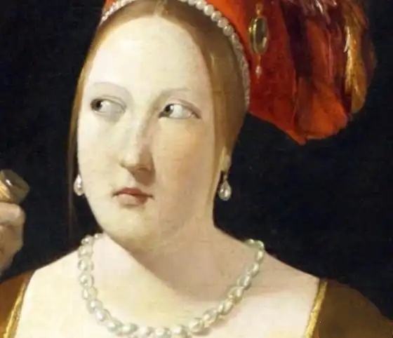《方块A的作弊者》呈现出四个成年人的场景,三女一男围坐在桌前。三人正在打牌,而一位女仆端着美酒为女主人倒酒。仔细观察可发现,画作左侧的男子手持方块A,显然是个作弊者。画中的受害者是坐在右侧的年轻人,外表光鲜亮丽,却显得幼稚易骗。画作中央的美丽少妇穿着入时,眼神透露着狡诈,与作弊男子共谋欺骗年轻人的财产。