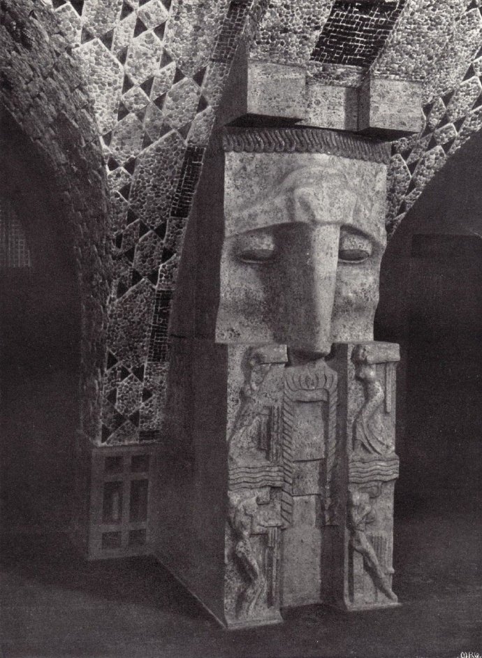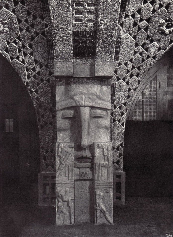 柏林波茨坦廣場「萊茵黃金之家」(Weinhaus Rheingold)的石廳(Steinsaal)內的一根雕刻柱子。這座建築由建築師阿爾弗雷德•梅塞(AlfredMessel)設計,於1907年完工。石廳的柱子和拱頂裝飾採用了由雕塑家弗朗茨•梅策爾(Franz Metzner)創作的表現主義風格大型浮雕。「萊茵黃金之家」在第二次世界大戰中嚴重受損,並在柏林分裂期間被拆除。