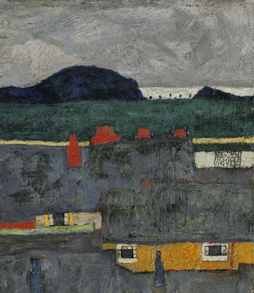 埃贡·席勒 河上古镇的房子 1914 布面油画 100 x 120.5 cm 西班牙提森-博内米萨国家博物馆