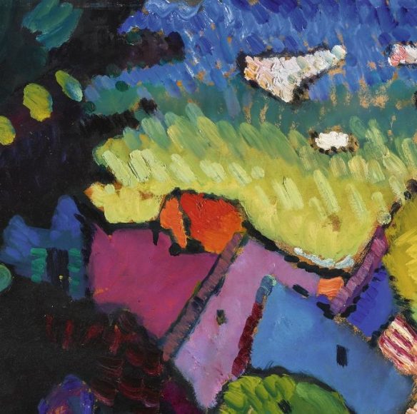 康定斯基 穆尔瑙-风景与绿屋 1909 板上油画 70 x 96 cm