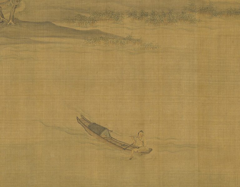 卷尾以宁静的江景作为结束,一行白鹭飞过江面,一位渔人坐在江上的船中吹着笛子,意境悠远。此卷绘制于南宋嘉定元年,现藏台北故宫博物院。