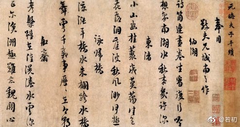 朱熹(1130-1200),字元晦,号晦庵,人称考亭先生。南宋徽州婺源(今属江西)人,寓居建州。《书史会要》 说他:“善行草,尤善小字,下笔即沉着典雅。”