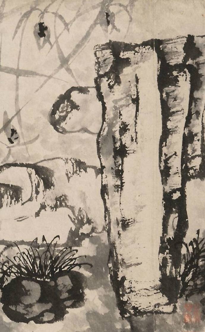 兰、石、竹的铺排错落成趣,石涛可以说是于挥毫之间自抒胸臆,落墨爽利峻迈,运笔淋漓清润,其狂放不羁的个性可由此窥知一二。
