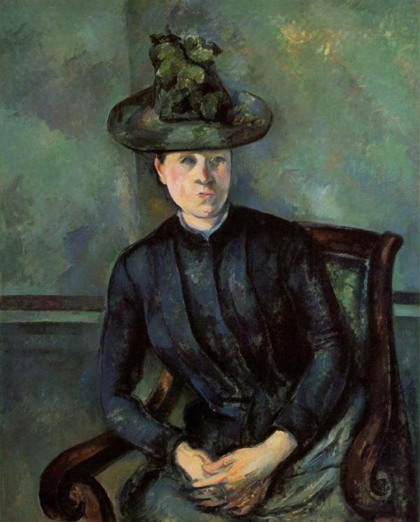 《戴绿帽子的塞尚夫人》(1894-1895)