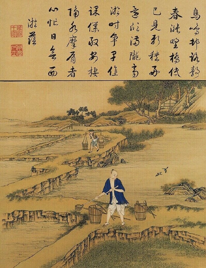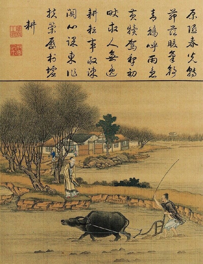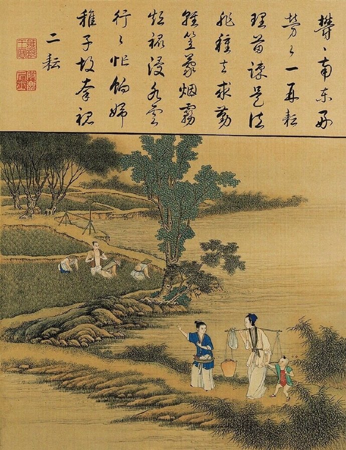 《雍正耕织图》是雍正登基以前以康熙年间刻版印制的《耕织图》为蓝本,由清宫廷画师精心绘制而成。