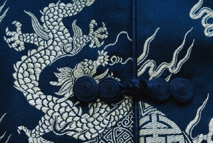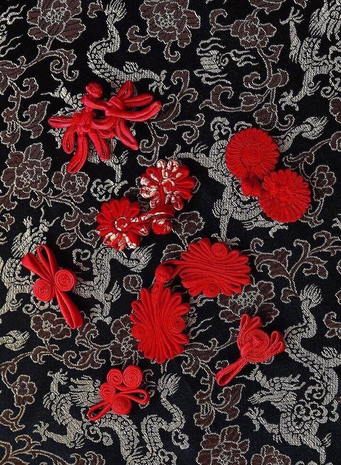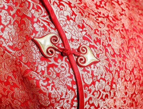 缎绸裹曼妙 襟衩撩风姿 荷叶领绕玉颈 盘扣语心丝