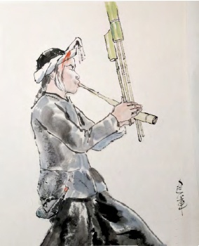 7. 笙,一种轻便的风琴,由竹管组成,安装在一个大葫芦壳上。
