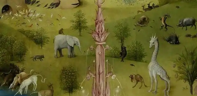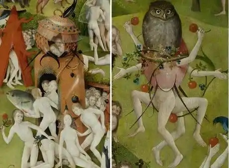 博斯一生中画了三幅可以按顺序从左至右阅读的三联画,其中每一幅的中心面板都必不可少。这三部作品主题独特而又相互联系,涉及历史和信仰。从这一时期的三联画来看,左侧和右侧面板通常描绘伊甸园和最后的审判,而中心面板则包含主要的拍摄对象。尽管普遍认为这幅《人间乐园》的“花园”部分可能作为祭坛使用,但考虑到其极端题材,这幅画作的目的更可能是为外行人士而非教堂或寺院。