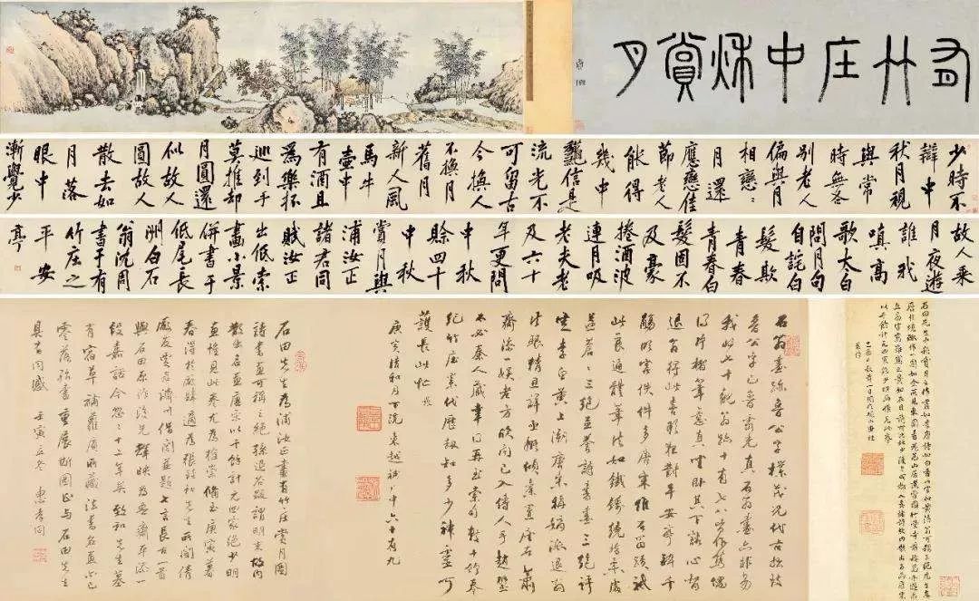 有竹庄中秋赏月图卷 明 沈周 设色纸本