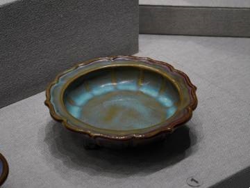 北宋 钧窑玫瑰紫釉菱花式三足花盆托