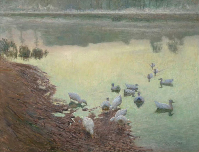 克劳斯擅长描绘自然风光与乡村生活,尤其以光影在水面、雾气中的折射效果著称。一战期间避居伦敦,创作了大量以泰晤士河为主题的风景画,风格介于透纳与莫奈之间。1904年,他发起“水与光协会”,推动比利时印象派的最后重要演变。