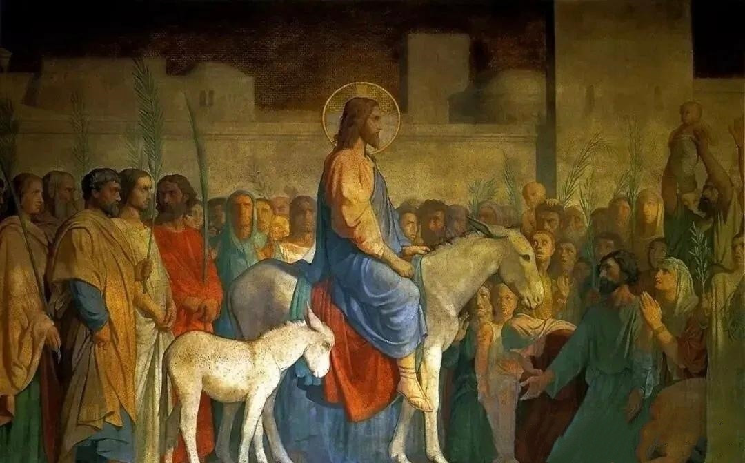 - 描绘了圣经中棕枝主日耶稣骑驴进入耶路撒冷的场景,民众手持棕榈枝、铺展衣物迎接,是基督教重要的宗教叙事题材;