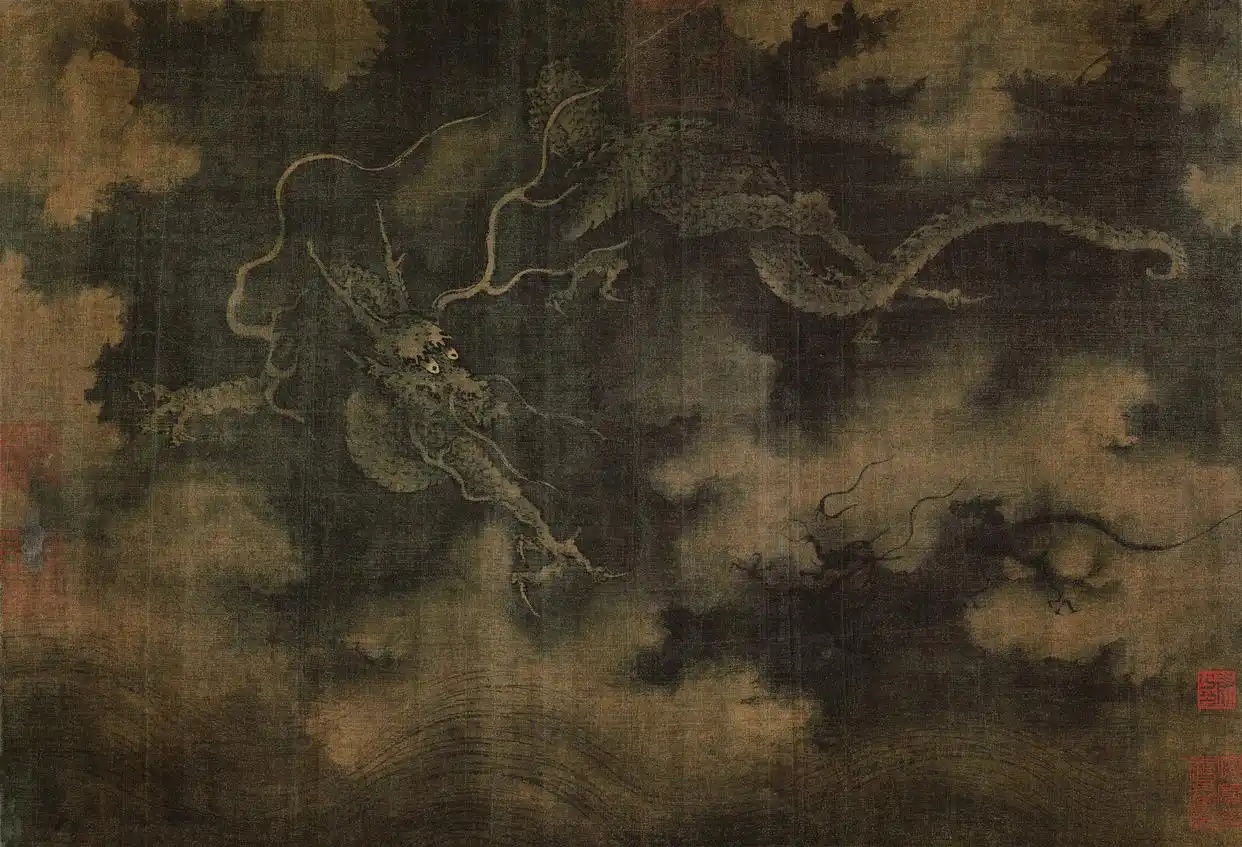 《墨龙图》作者南宋陈容,绢本设色,尺寸34.3厘米 x 50厘米,现藏于北京故宫博物院