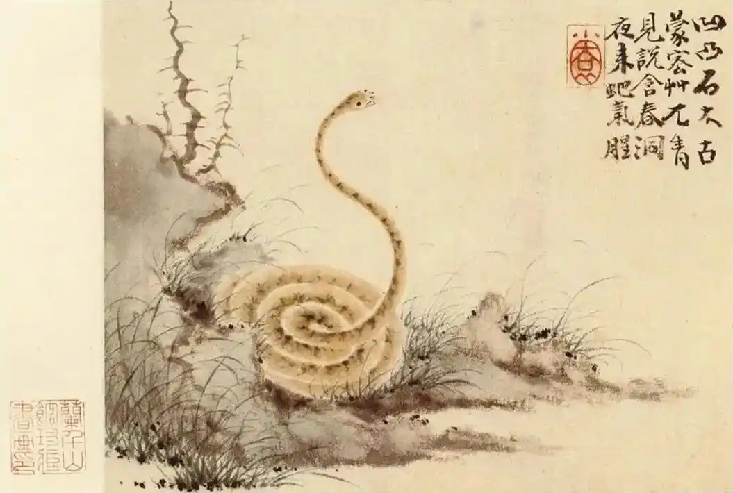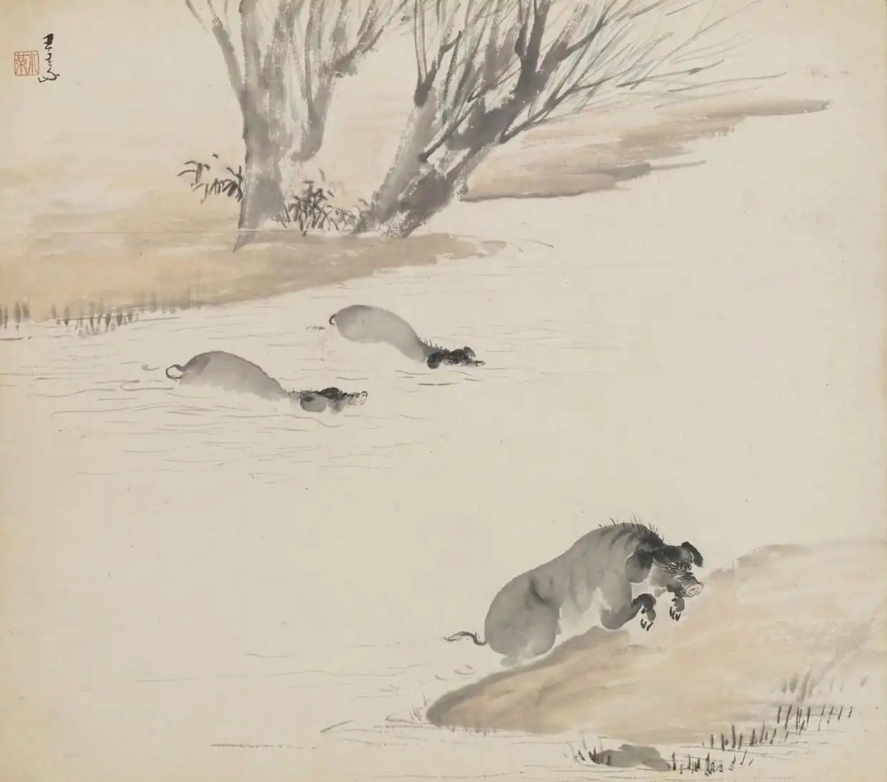 《猪图》作者清代王素,纸本设色,尺寸35.4厘米 x 40.1厘米,现藏于台北故宫博物院