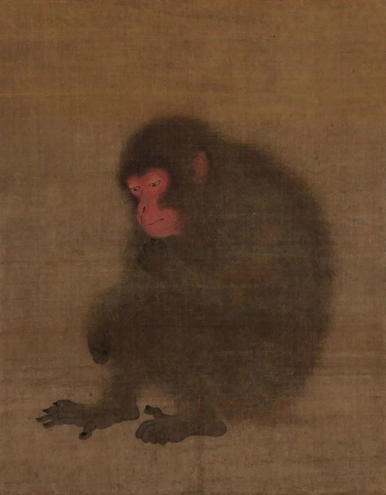 《猿图》作者南宋毛松,绢本设色,尺寸47.3厘米 x 36.7厘米,现藏于日本东京国立博物馆