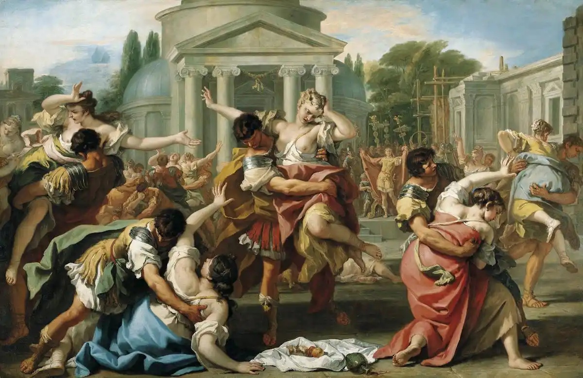 塞巴斯蒂亚诺·里奇(Sebastiano Ricci)于1700年创作了《抢夺萨宾女人》(The Rape of The Sabine Women),尺寸约197厘米 x 303厘米。