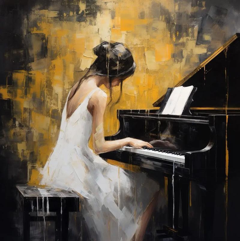 雷诺阿没有使用轮廓线来勾勒人物,而是通过不同的色彩和明暗变化,让两个沉浸于音乐的女孩显得立体而生动。整个画面构图精美,色彩柔和,线条流畅,充满一种甜美纯真的氛围。