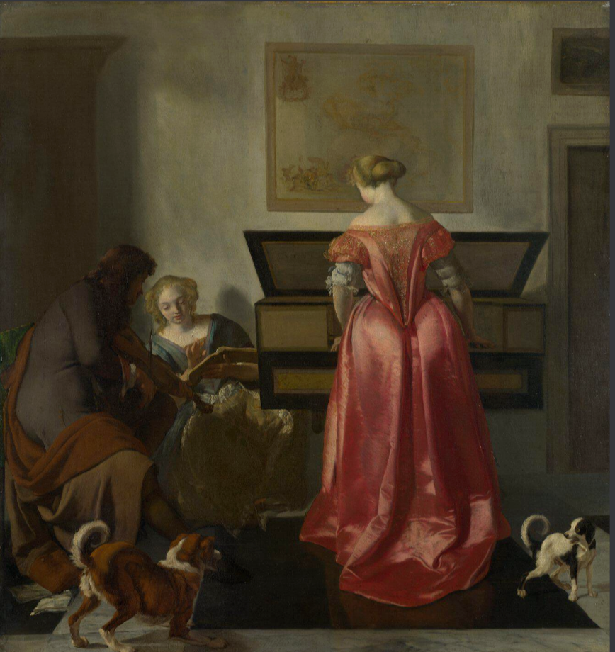 这就是16世纪的“吉他”? 01 这幅颇具喜剧感的画作来自荷兰黄金时代的风俗画画家Jan Miense Molenaer(1610—1668年),名为《一位年轻男子演奏西奥伯琴,一位年轻女子演奏西特琴》 画中,一对幸福的年轻夫妇正在一间优雅的镶板房间里演奏音乐。年轻人悠闲地坐着,他修长的手指拨动着西奥伯琴的琴弦——这是一种古老的乐器,现在很少有人演奏;年轻女子演奏的则是西特琴,这是一种比较容易掌握的乐器。 西奥伯琴属于鲁特琴大家族,是一种弹拨乐器,具有加长的琴颈和第二个弦轴盒。西奥伯琴起源于16世纪晚期的意大利,当时佛罗伦萨卡美拉塔(Florentine Camerata)的歌剧和使用低音连奏的新音乐作品,如朱利奥·卡奇尼(Giulio Caccini)的两部作品集都要求使用音域更宽的低音乐器,音乐家最初使用大型低音鲁特琴和更高的凹入调音;但很快就创建了带有辅助弦轴的琴颈延伸部分,以容纳额外开放(即无品格)的较长低音弦,称为音叉或波登,以提高音调清晰度并增加可用音符的范围,西奥伯琴便这样诞生了。 与鲁特琴一样,西奥伯琴也有一个带有木质顶部的弧形音箱(空心箱),通常带有音孔,以及从音箱伸出的琴颈。演奏者用一只手拨动或拨动琴弦,同时用另一只手“按动”(按下)琴弦;按下琴颈上不同位置的琴弦会产生不同的音高(音符),从而使演奏者能够演奏和弦、贝斯线和旋律。 而西特琴则是文艺复兴时期的一种弦乐器,虽然现代学者对其确切的历史存在争议,但普遍认为它是中世纪西特里琴(citole,一种中古吉他式乐器,通常有四根弦)的后代。它的平背设计比鲁特琴更简单,造价也更低;同时它也更容易演奏,体积更小,更便于携带。不同社会阶层的人都会弹奏西特琴,它是一种很受欢迎的休闲音乐创作乐器,就像今天的吉他一样。 如今,西特琴家族以科西嘉乐器(Corsican cetara)和葡萄牙吉他的形式幸存下来。葡萄牙吉他通常用于演奏流行的传统音乐法多(fado)。20 世纪 70 年代初,英国制琴师斯特凡-索贝尔(Stefan Sobell)以吉他和一把 20 世纪 30 年代的拱顶马丁吉他为模型,创造了一种 “西特琴”,这是一种主要用于演奏民谣的混合乐器,深受民谣复兴音乐家的喜爱。