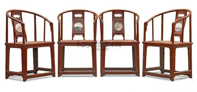 第10名 清早期 黄花梨嵌大理石圈椅4件套 成交价人民币17696000 嘉德20101121
