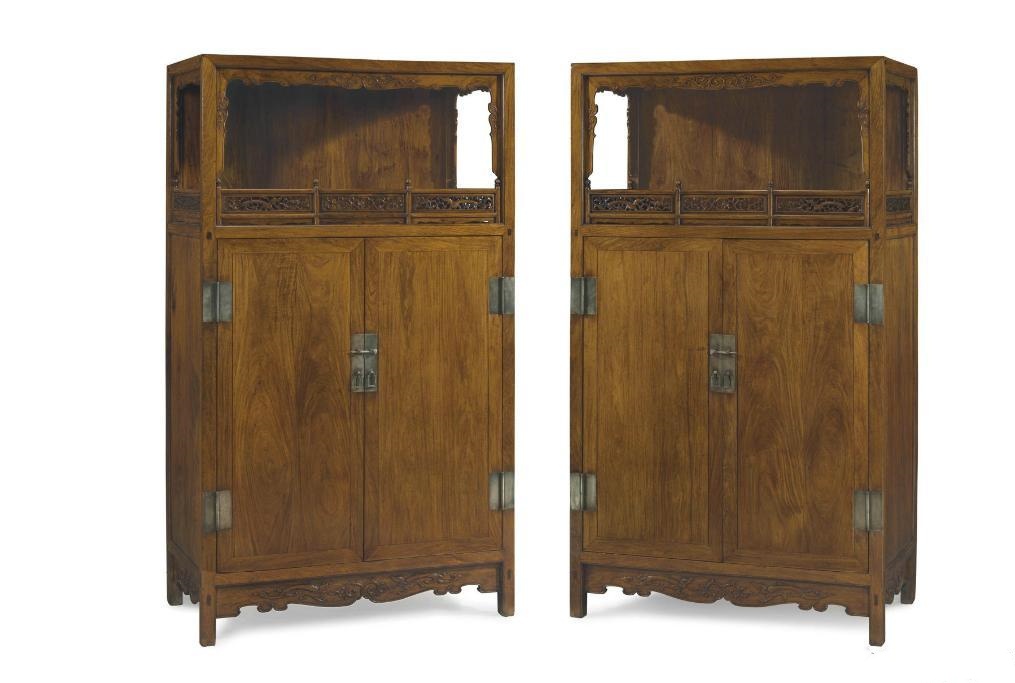 第8名清初黄花梨圈口栏杆亮格柜一对成交RMB18,586,360香港佳士得20121128