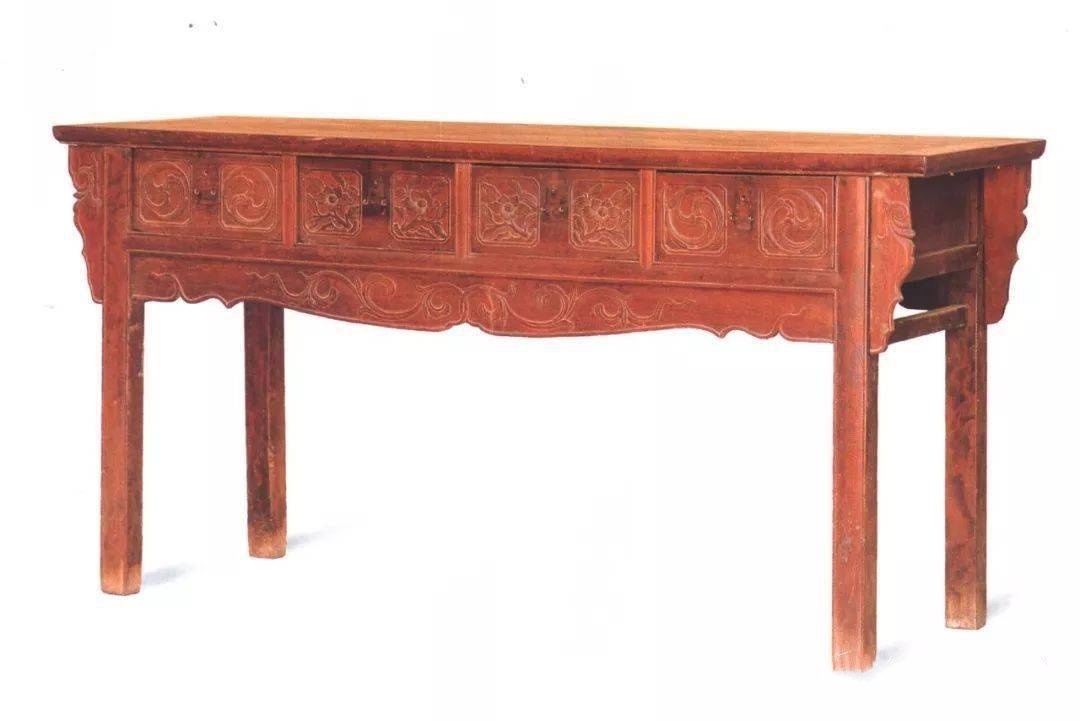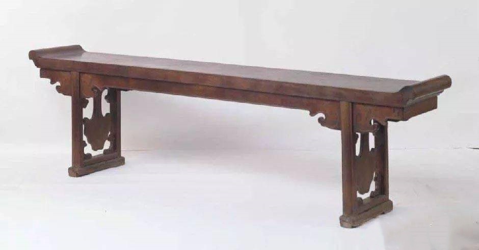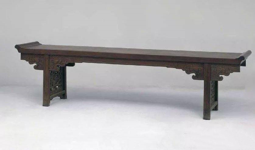 明·铁梨象纹翘头案,长343.5、宽50、高89cm。这是最著名的一件铁力木家具,造型古拙、雄伟壮硕,堪称国之重器。上世纪早期,它就被艾克收录在《中国花梨家具图考》中。