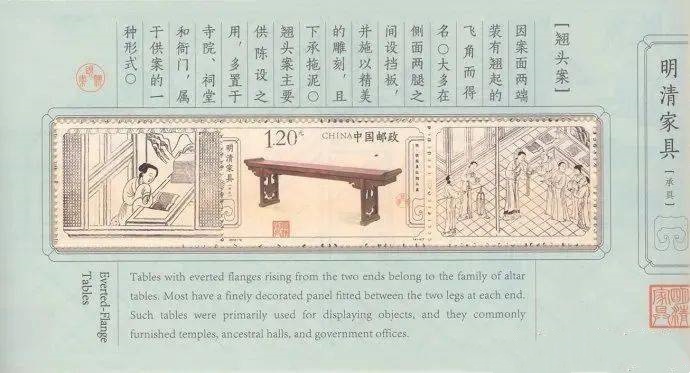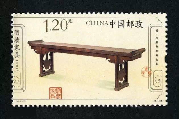 2012年入选中国邮政发行的《明清家具--承具》特种邮票,作为享誉世界的中国明清家具的代表,被印在国家文化名片上。